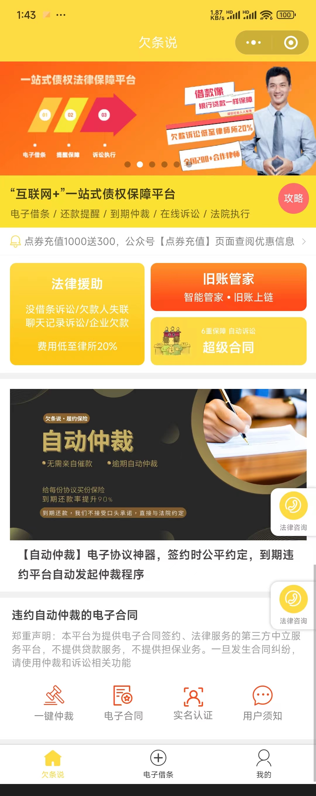 针对借款/欠款合同,平台提供只能的线上提醒功能,还款日提前三天提醒欠款方还款
